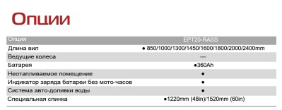 Благодаря мощному гидравлическому мотору модель EPT20-RASS часто используется в логистических компаниях, а также предприятиях обрабатывающей промышленности по всему миру.