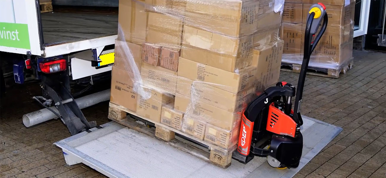 Тележка EPT12-EZ работает от небольшого, модульного аккумулятора. Вы легко сможете осуществлять любые погрузочно-разгрузочные работы.