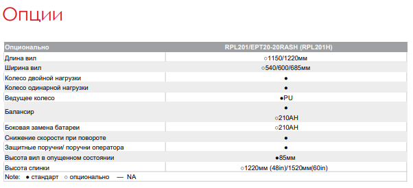 | Аккумулятор | 24V/205 a-h , 24V/210 a-h (опция 230) - EPT20-20RASH |