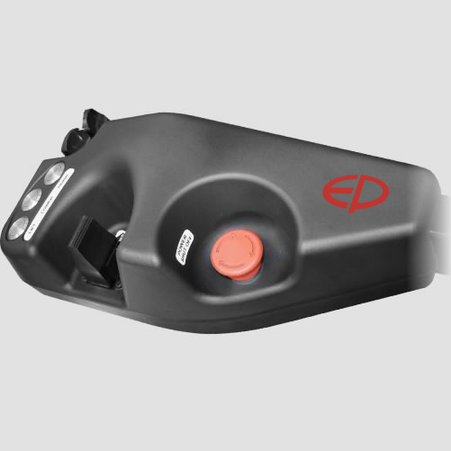 Движение оборудования осуществляется благодаря высокопроизводительному электродвигателю, питание которого осуществляется от встроенного блока бесперебойного питания AGA 224AH, который поддерживает возможность зарядки со стандартной розетки 230 В. Кроме этого, модель может комплектоваться дополнительным промышленным аккумулятором большего размера с внешним зарядным устройством