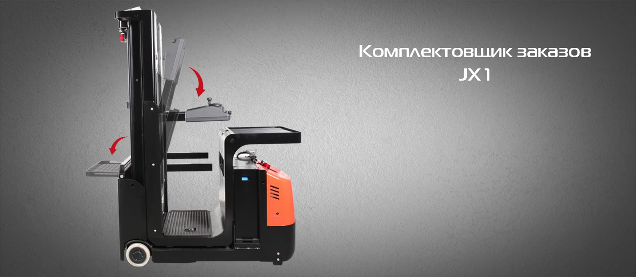 Сборщик JX1 может поднимать груз на высоту до 4880 мм, а радиус поворота составляет всего 1385 мм. Также, комплектовщик может передвигаться при поднятой платформе.