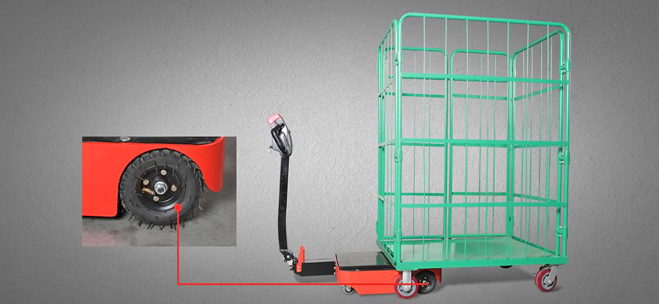 Специальные пневматические резиновые колеса от EP Equipment обеспечивают плавное движение и снижают вибрации.